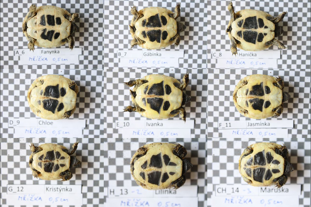 "Foto na občanku" – želvy se identifikují podle spodní části krunýře (plastronu). Je to něco jako otisk prstu, ale s růstem se mění.