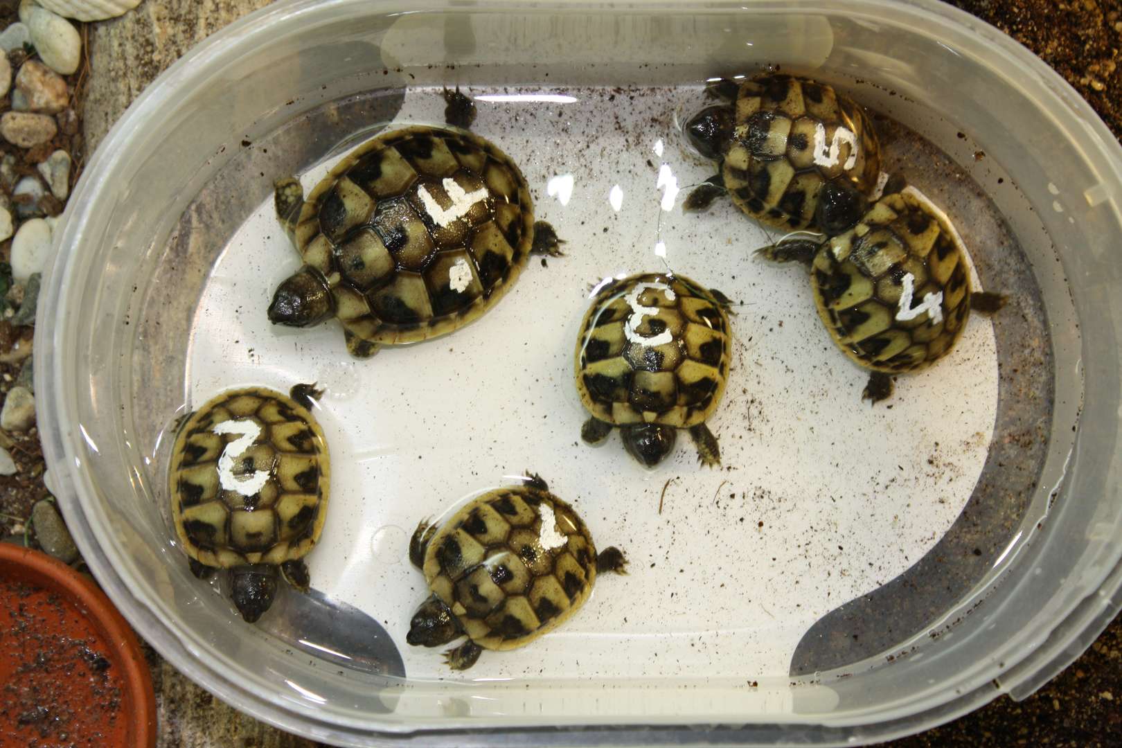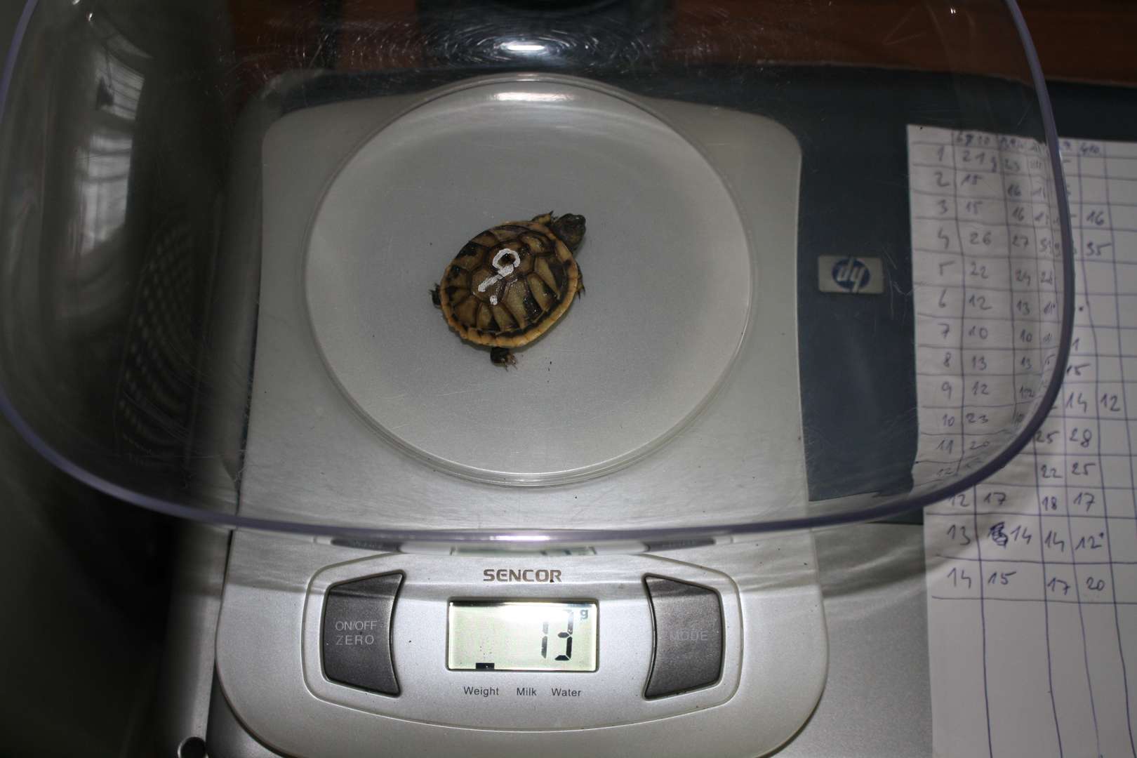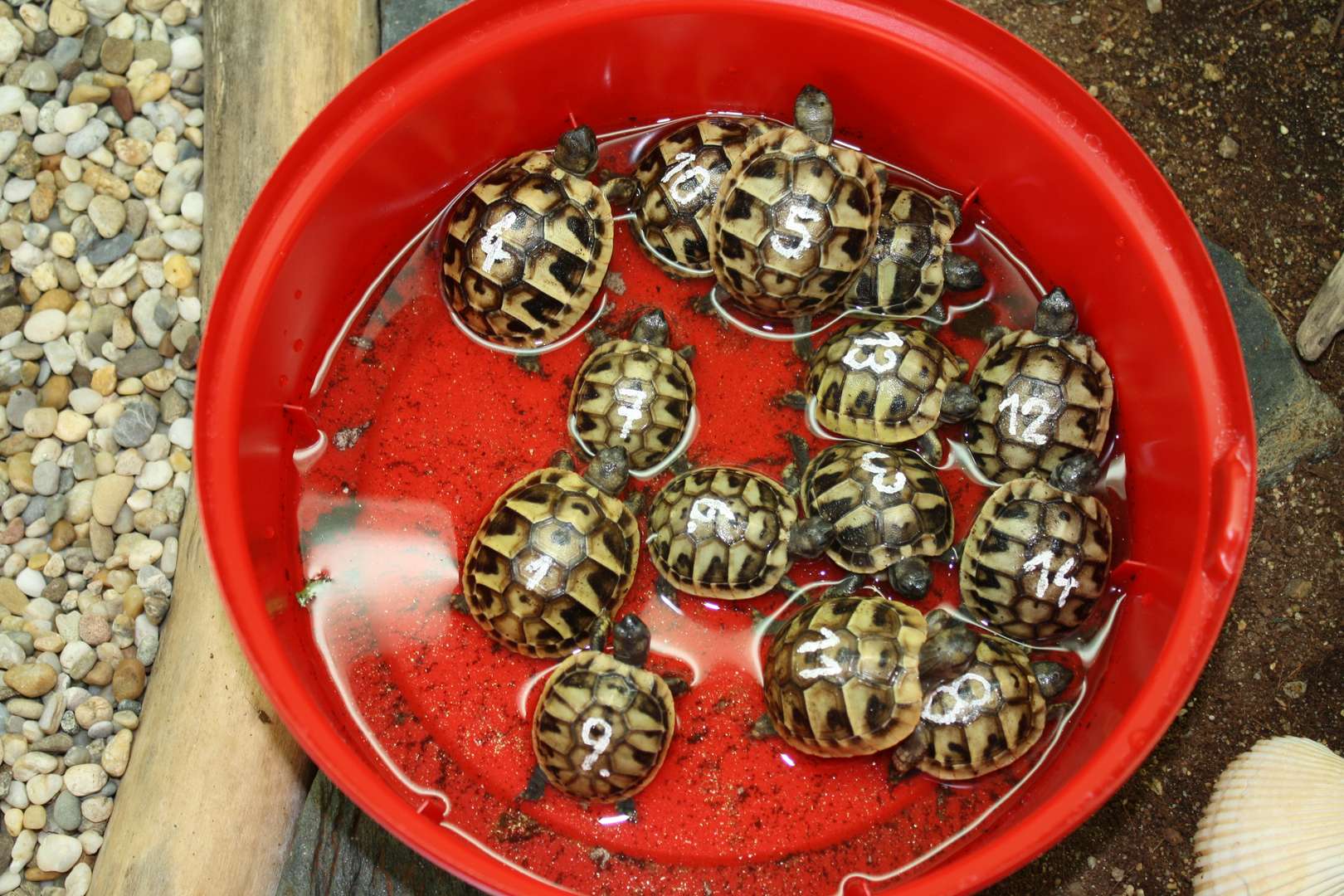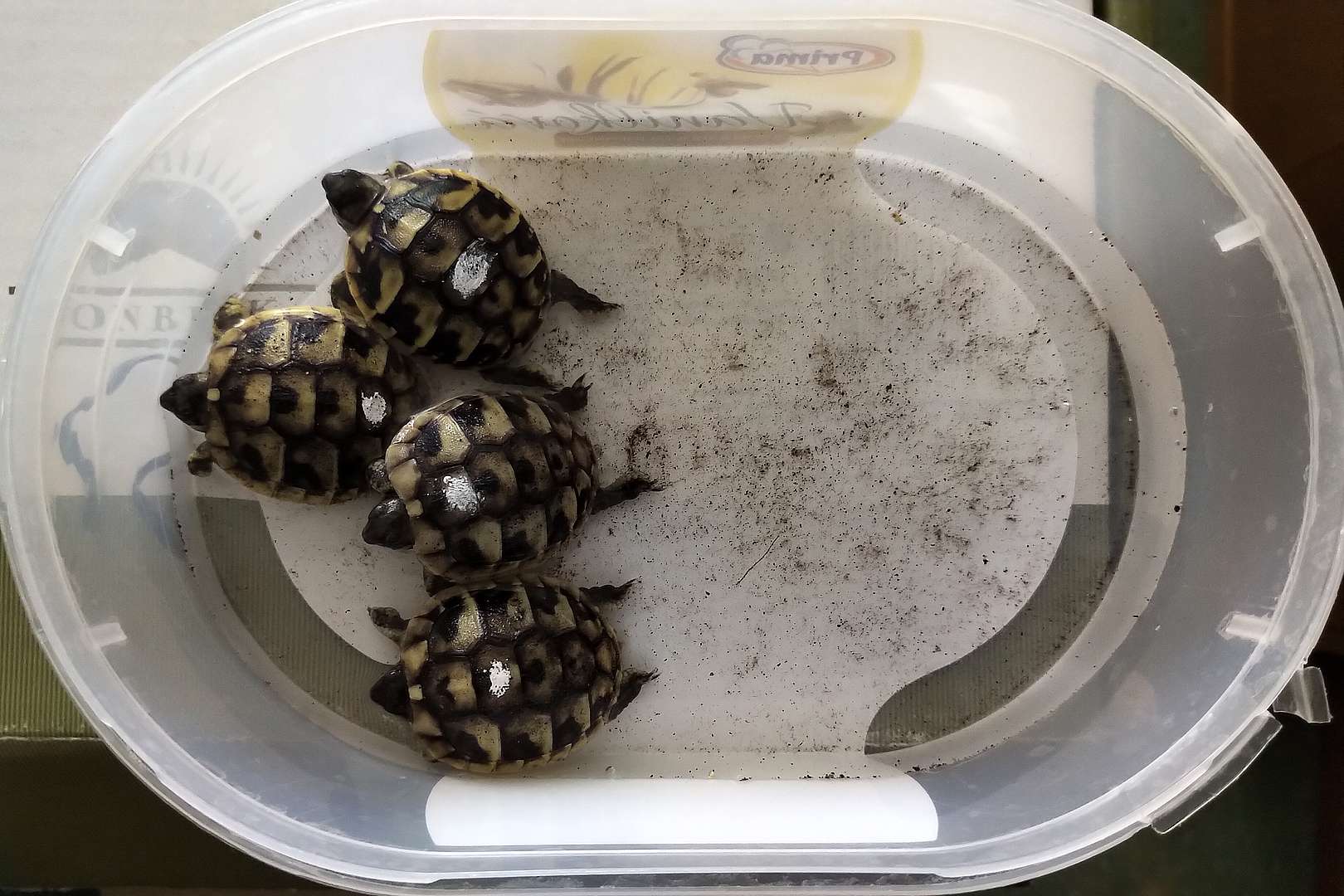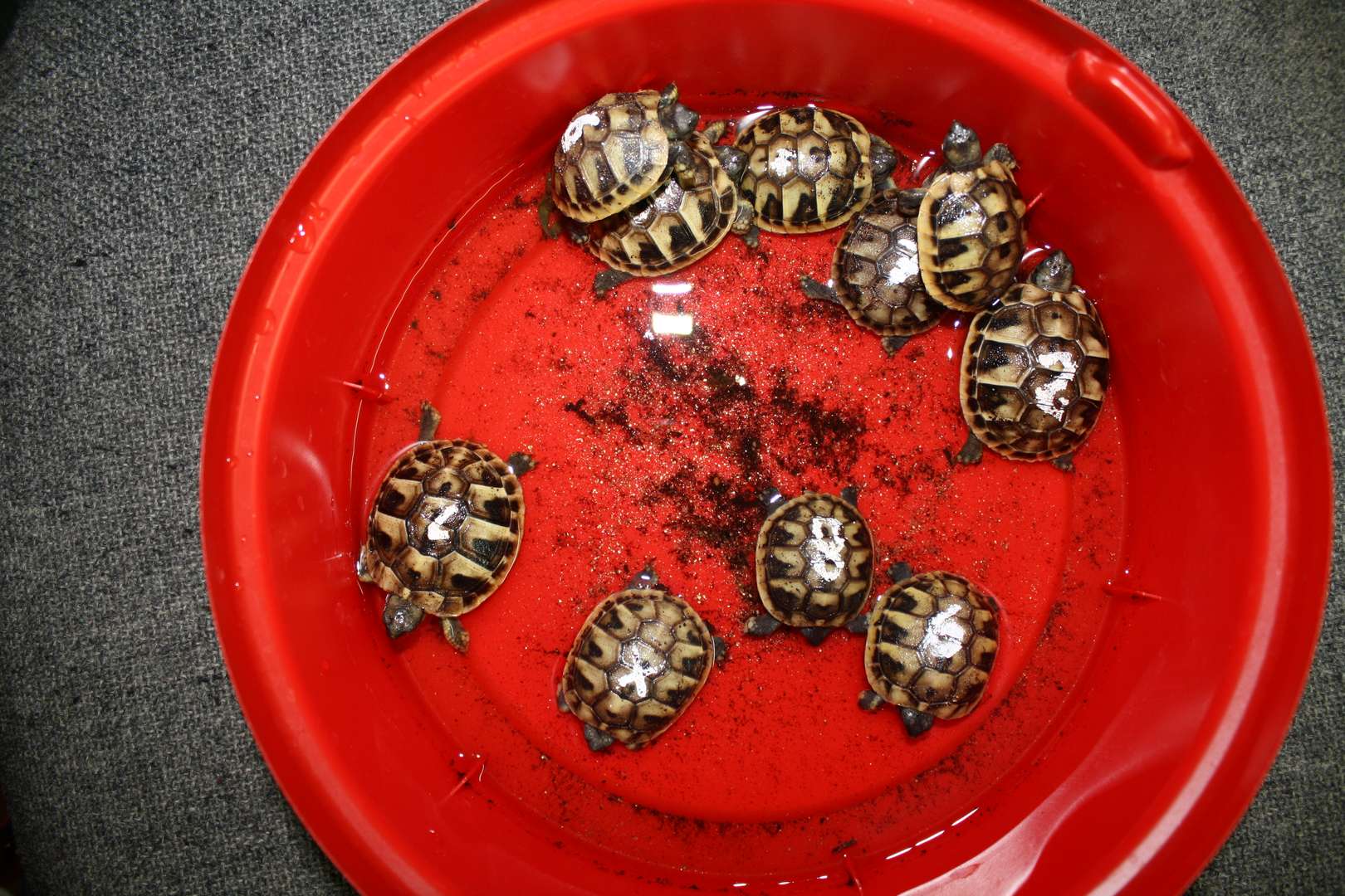 Želví mláďata stará 1 rok, 2 týdny a 1 den (14. 8. 2018).