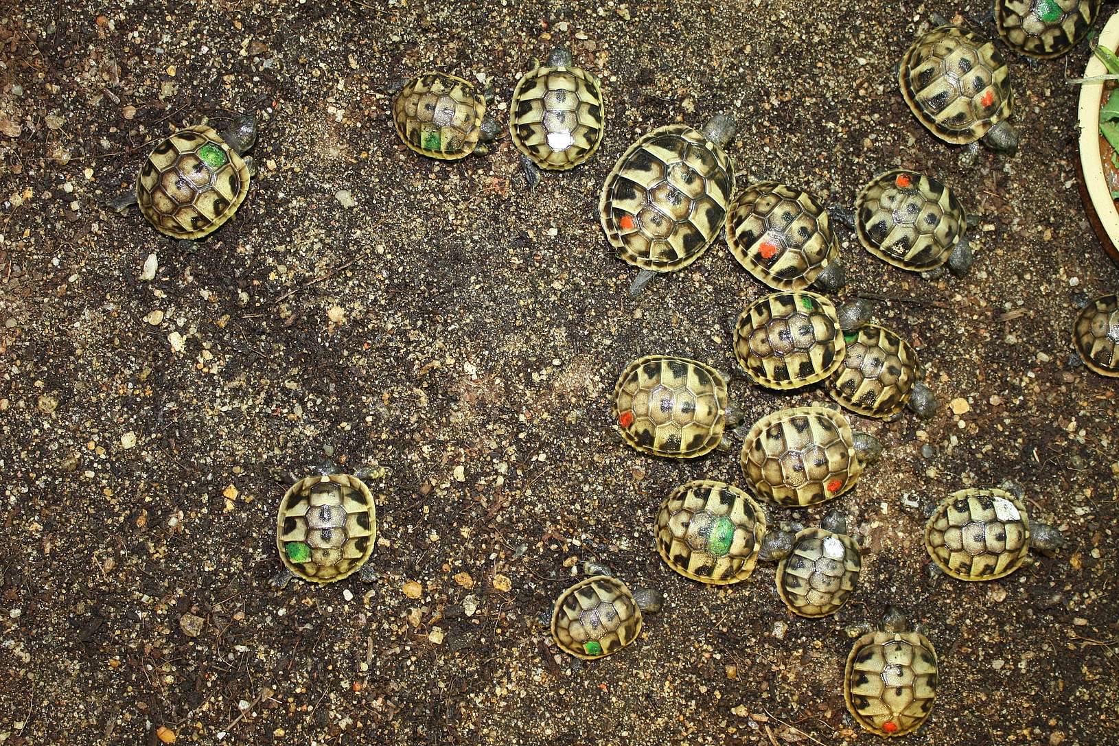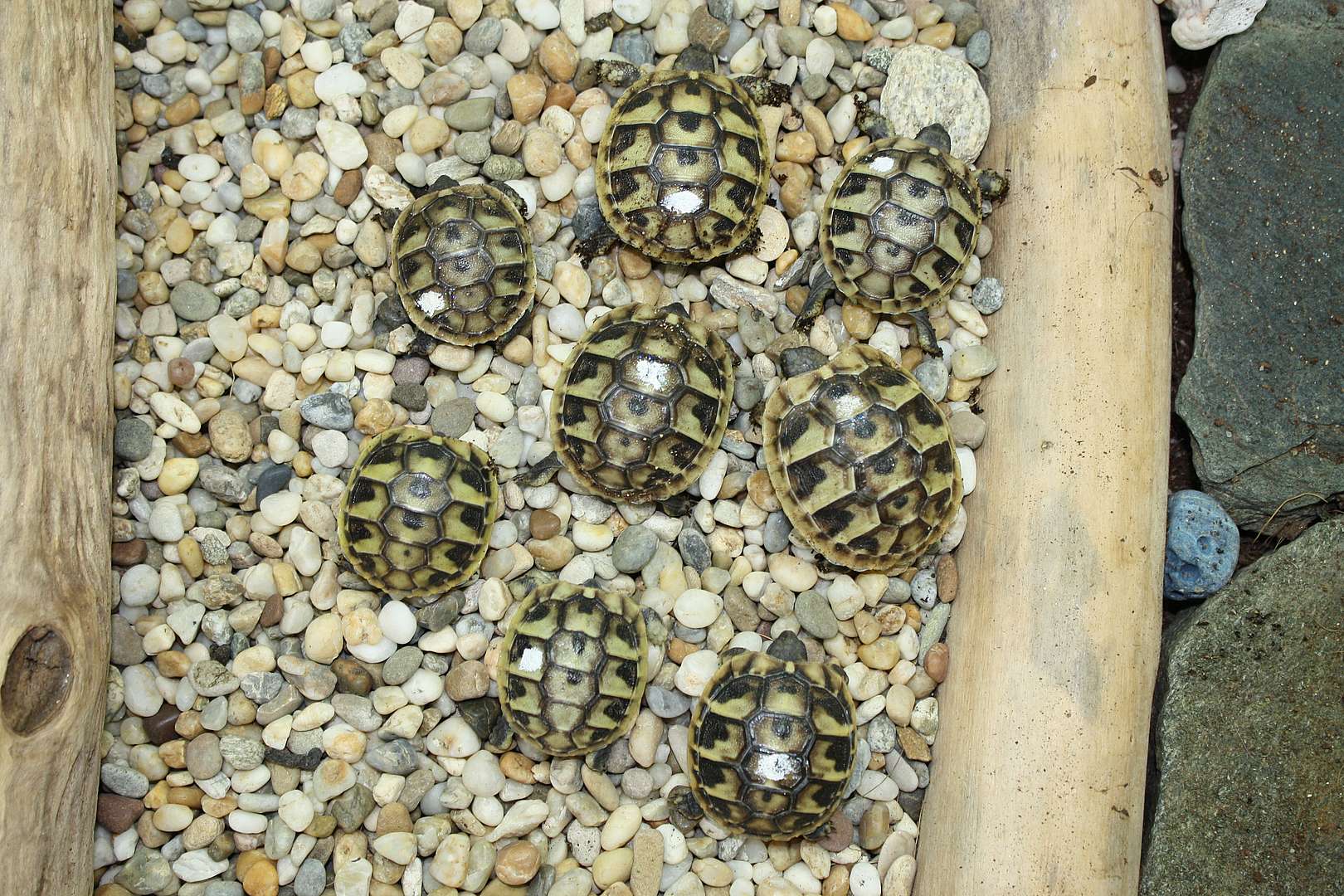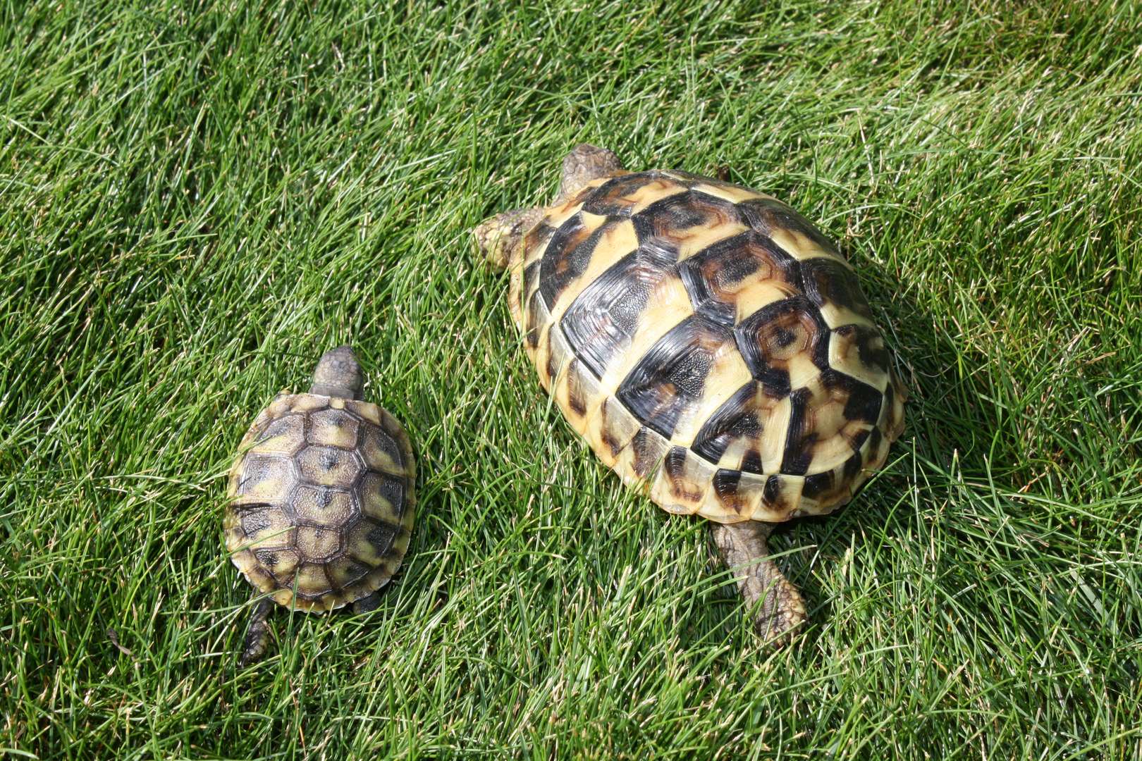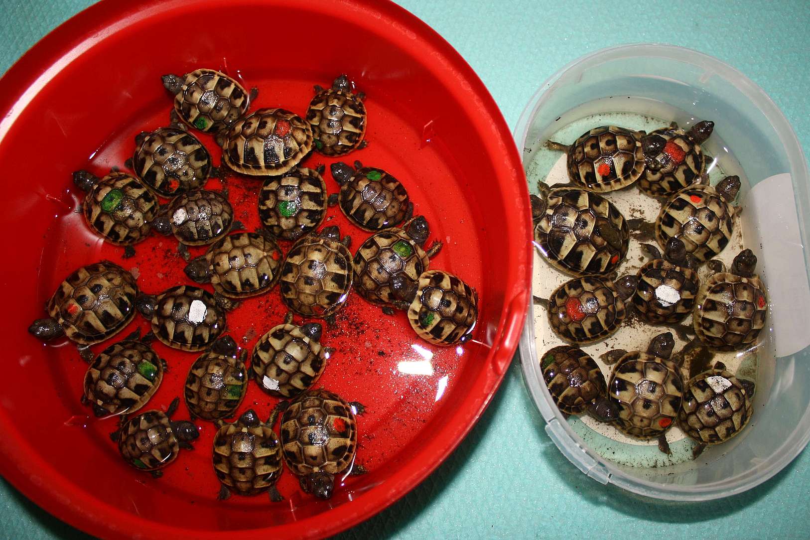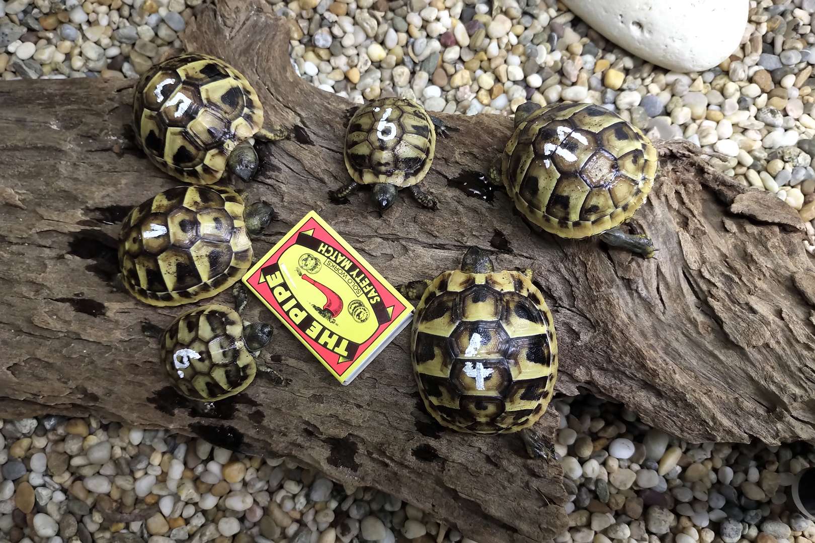 Želví mláďata stará 1 rok, 2 týdny a 1 den (14. 8. 2018).