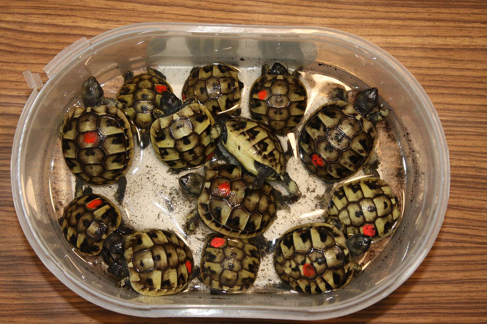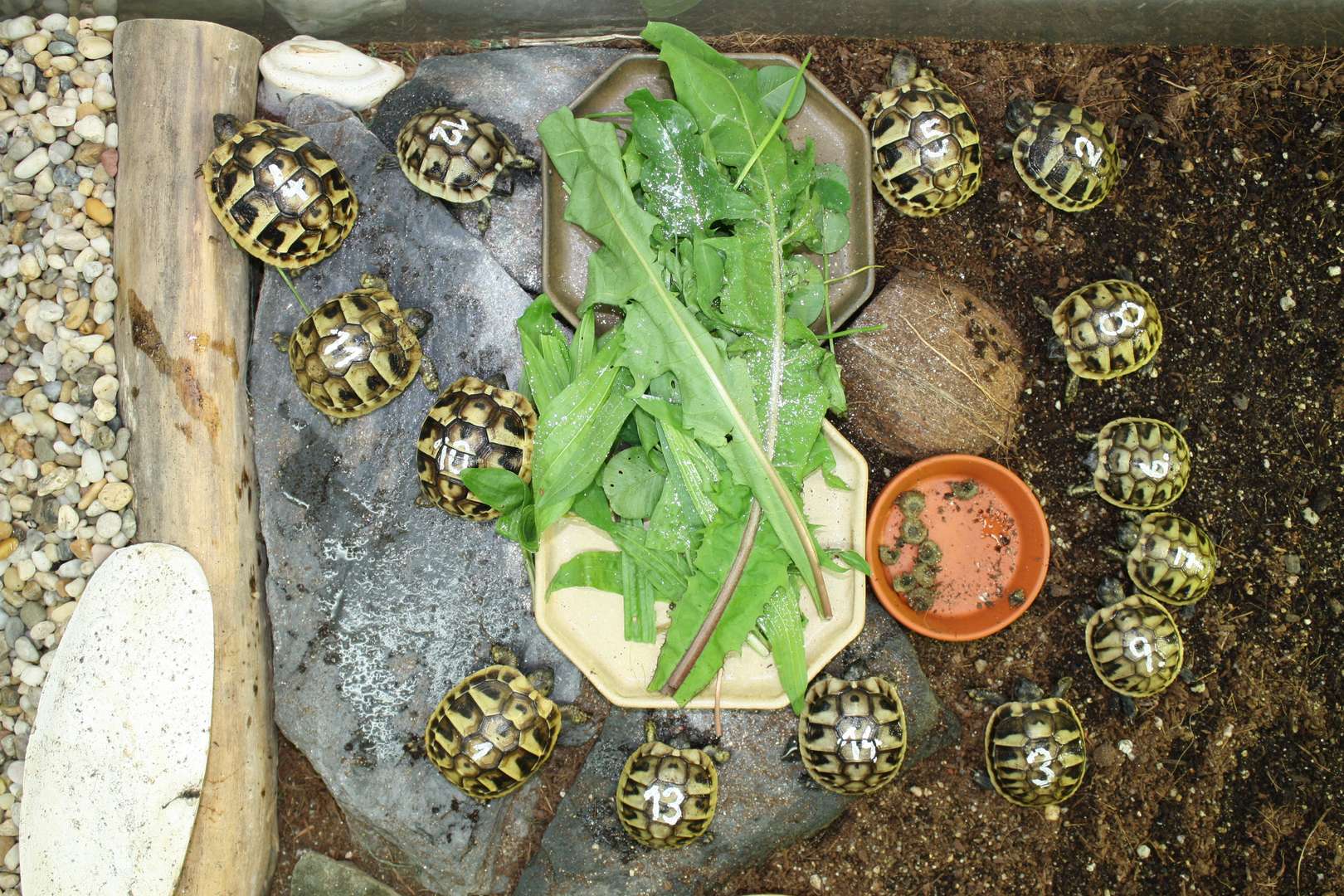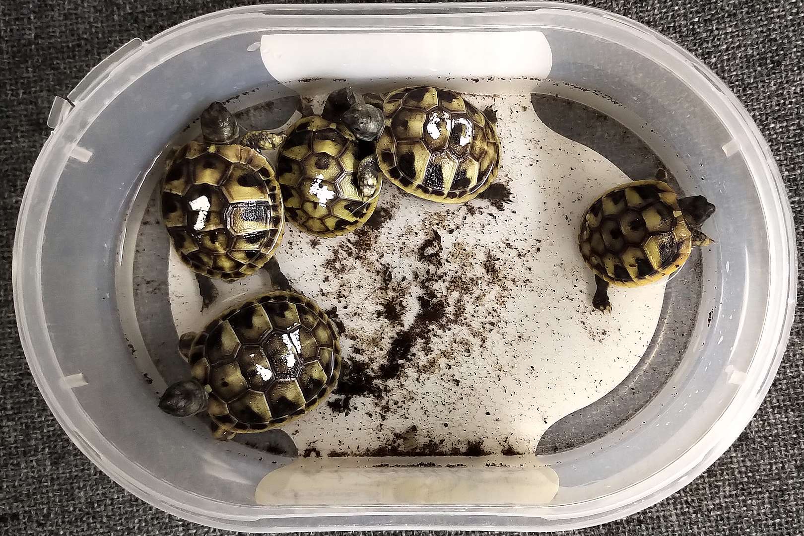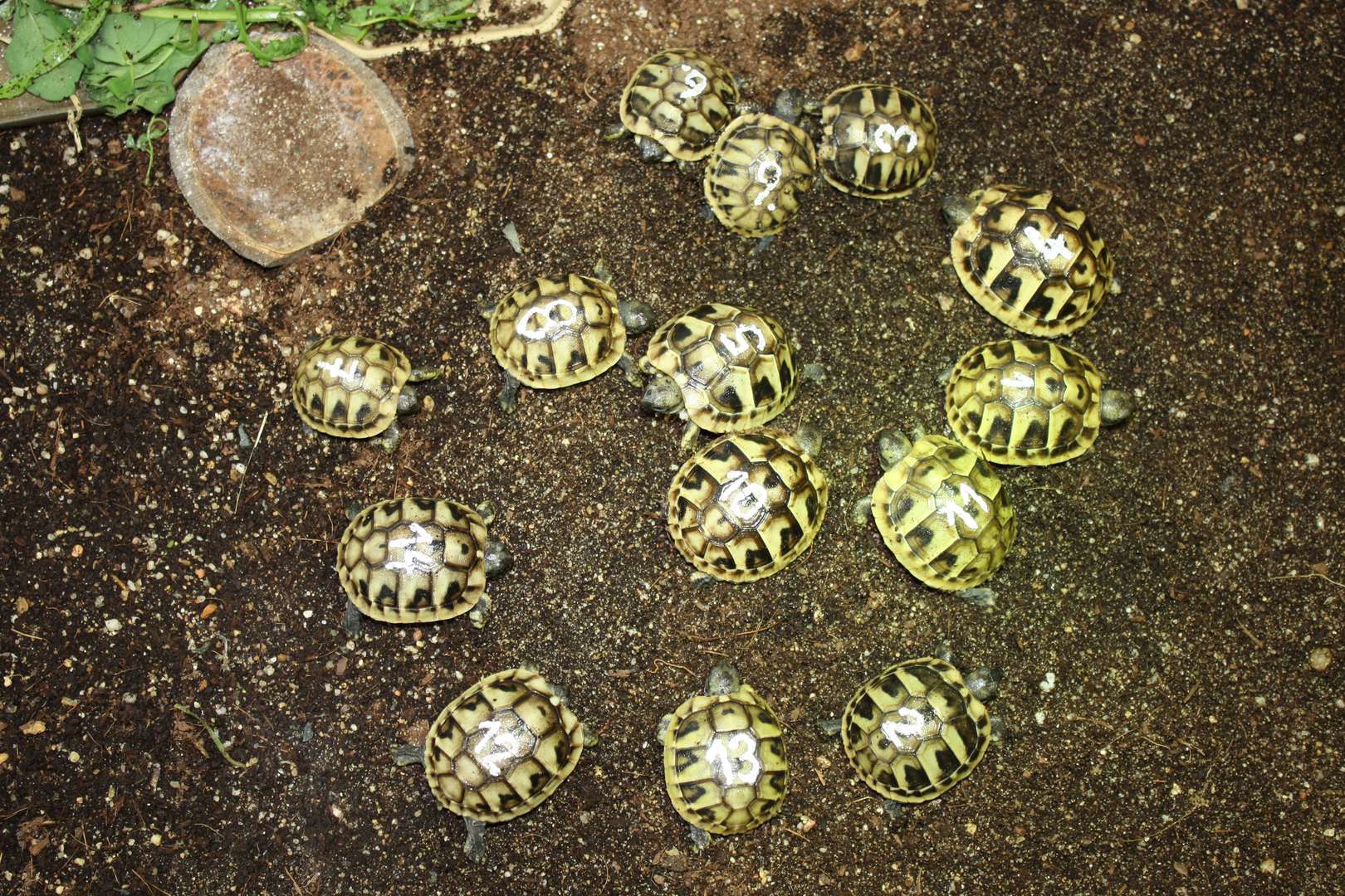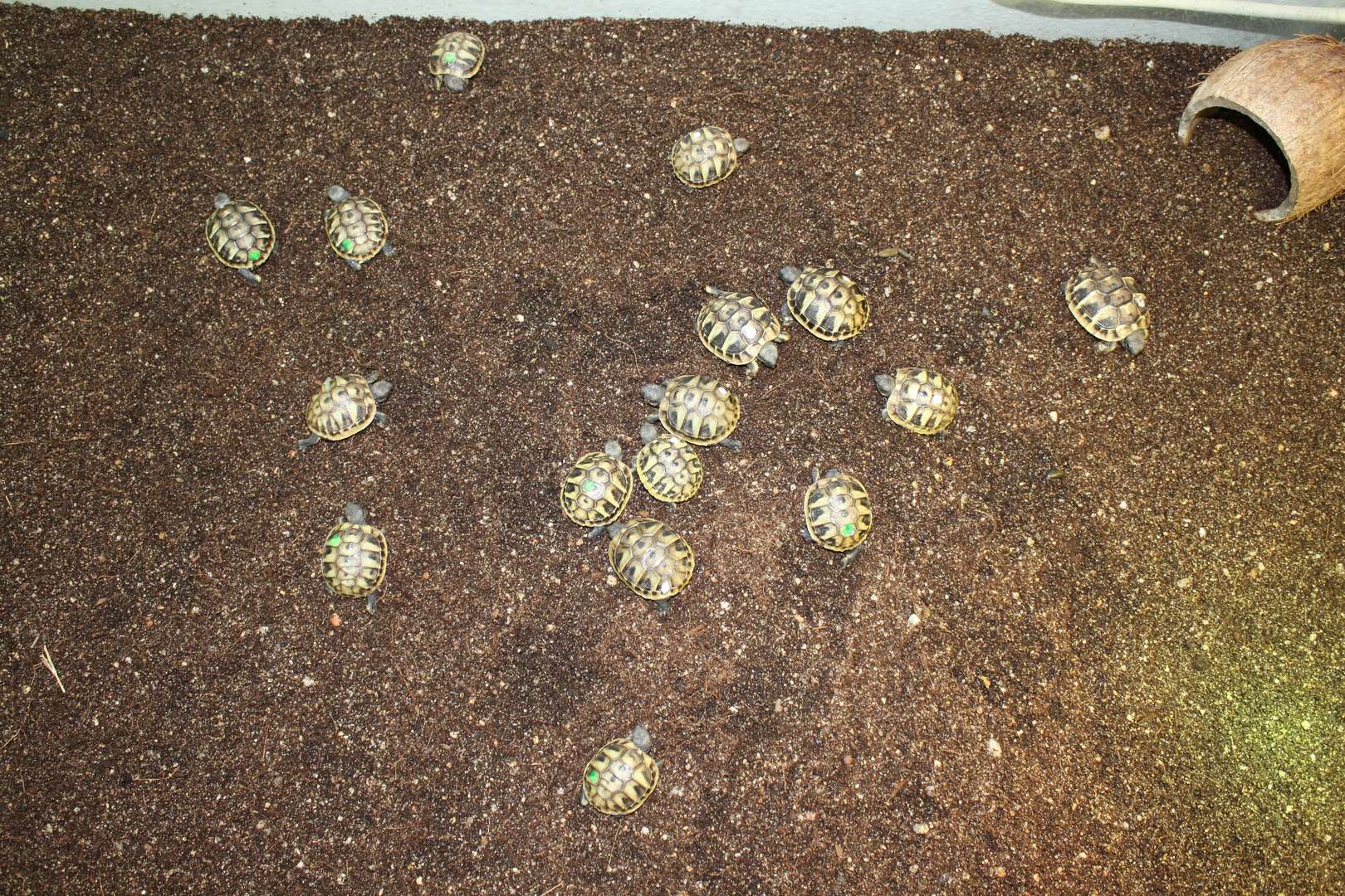 Želví mláďata stará 1 rok, 2 týdny a 1 den (14. 8. 2018).