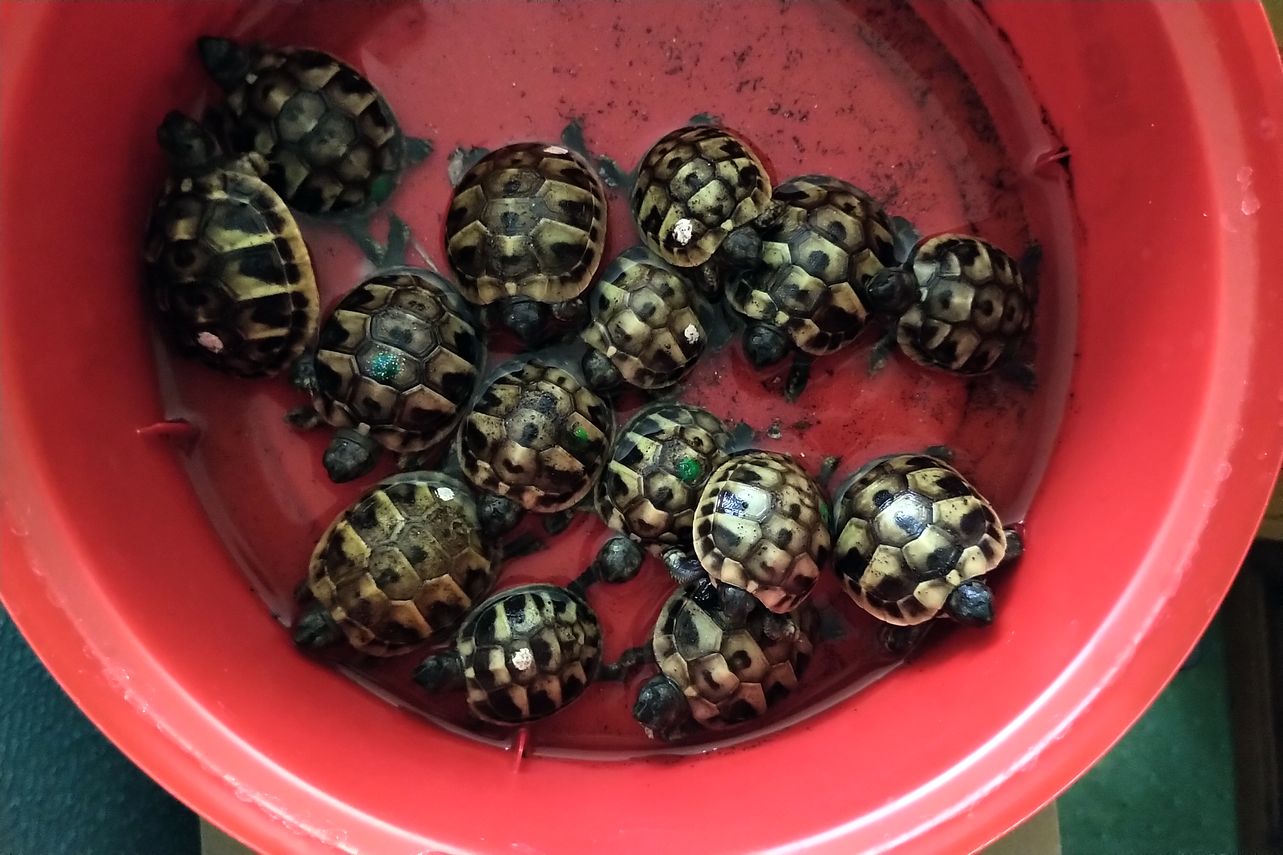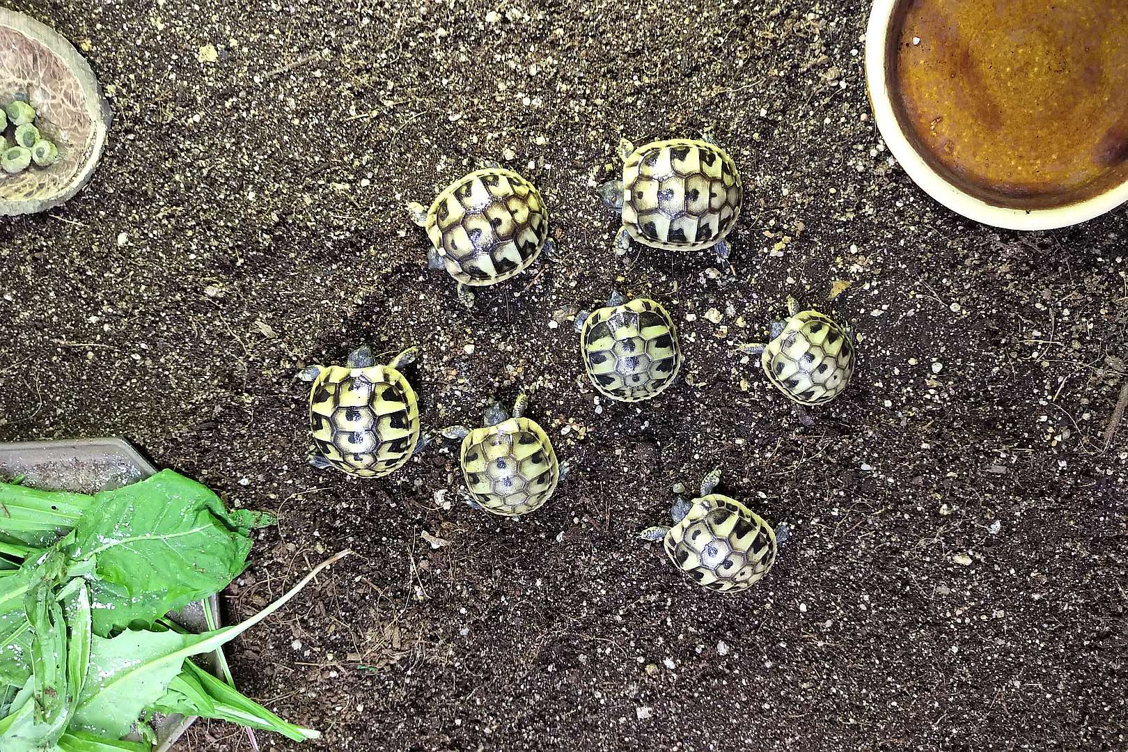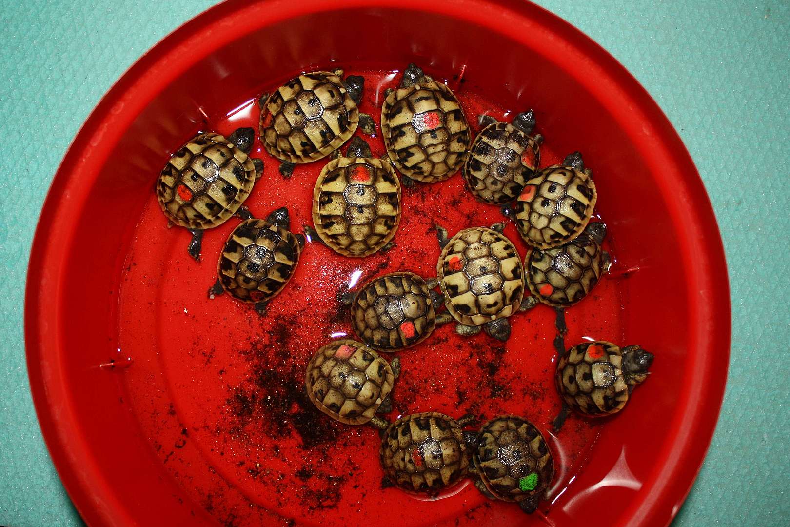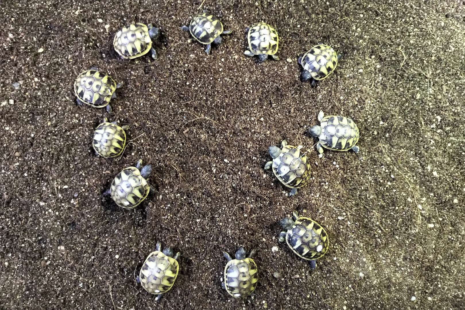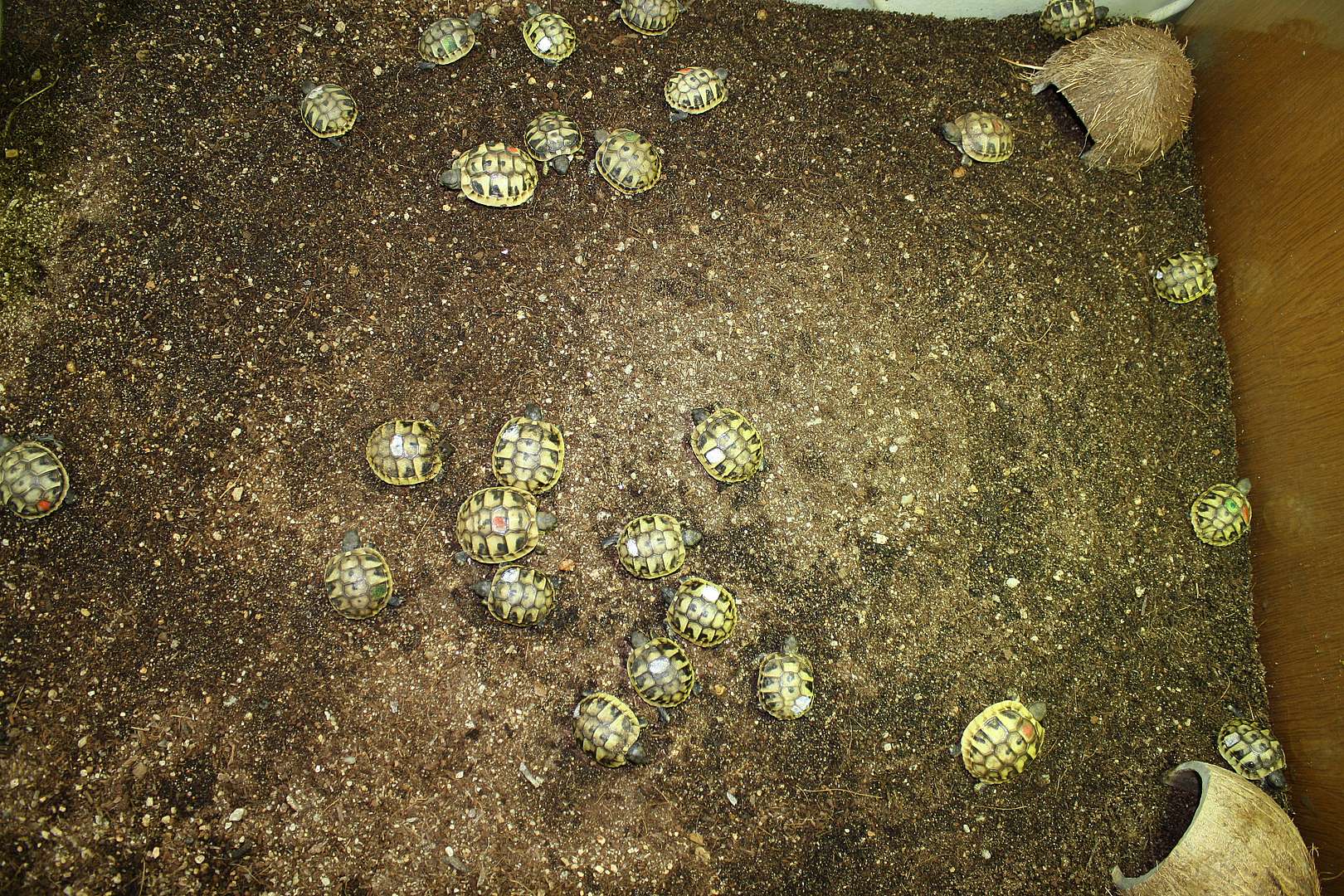 Želví mláďata stará 1 rok, 2 týdny a 1 den (14. 8. 2018).