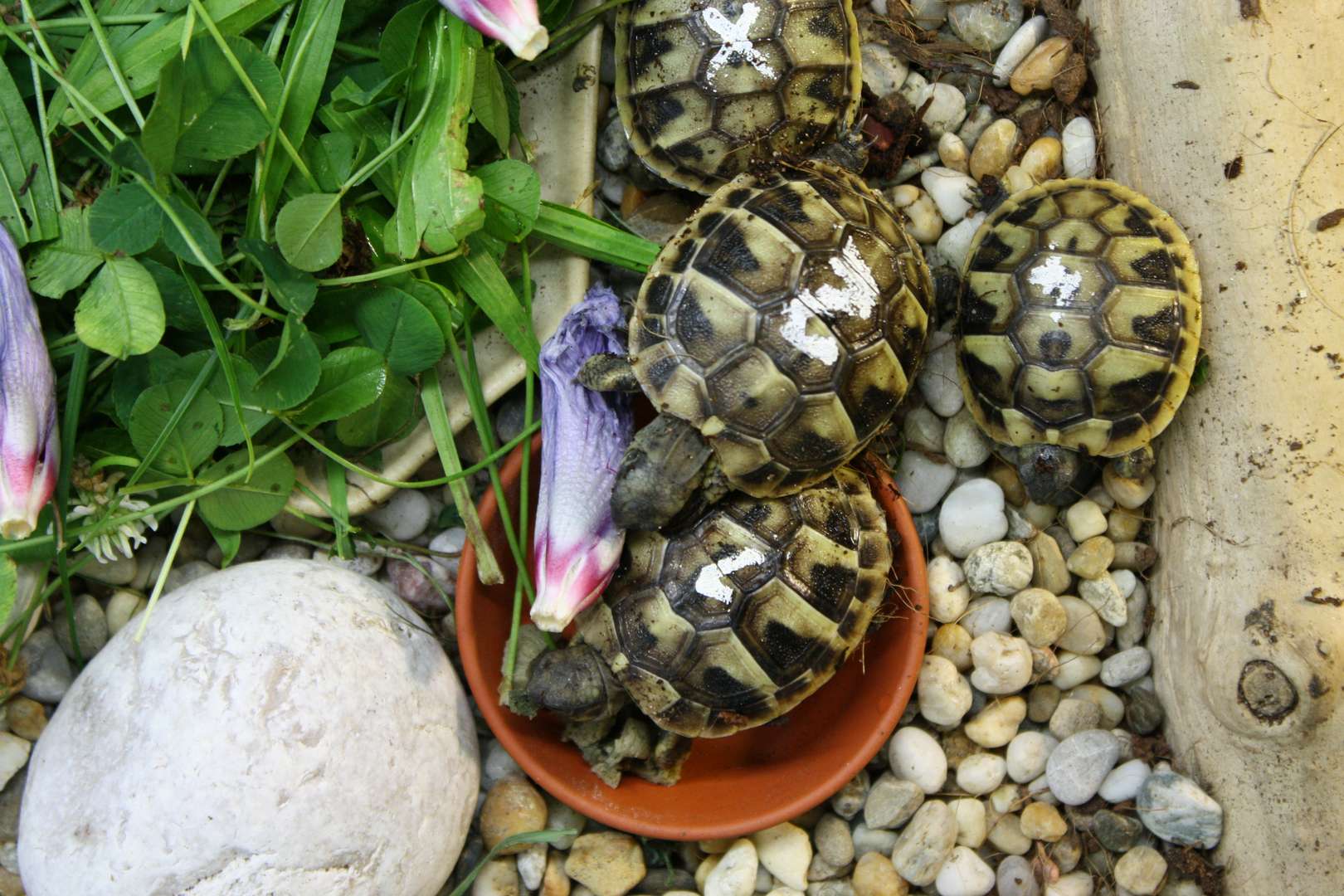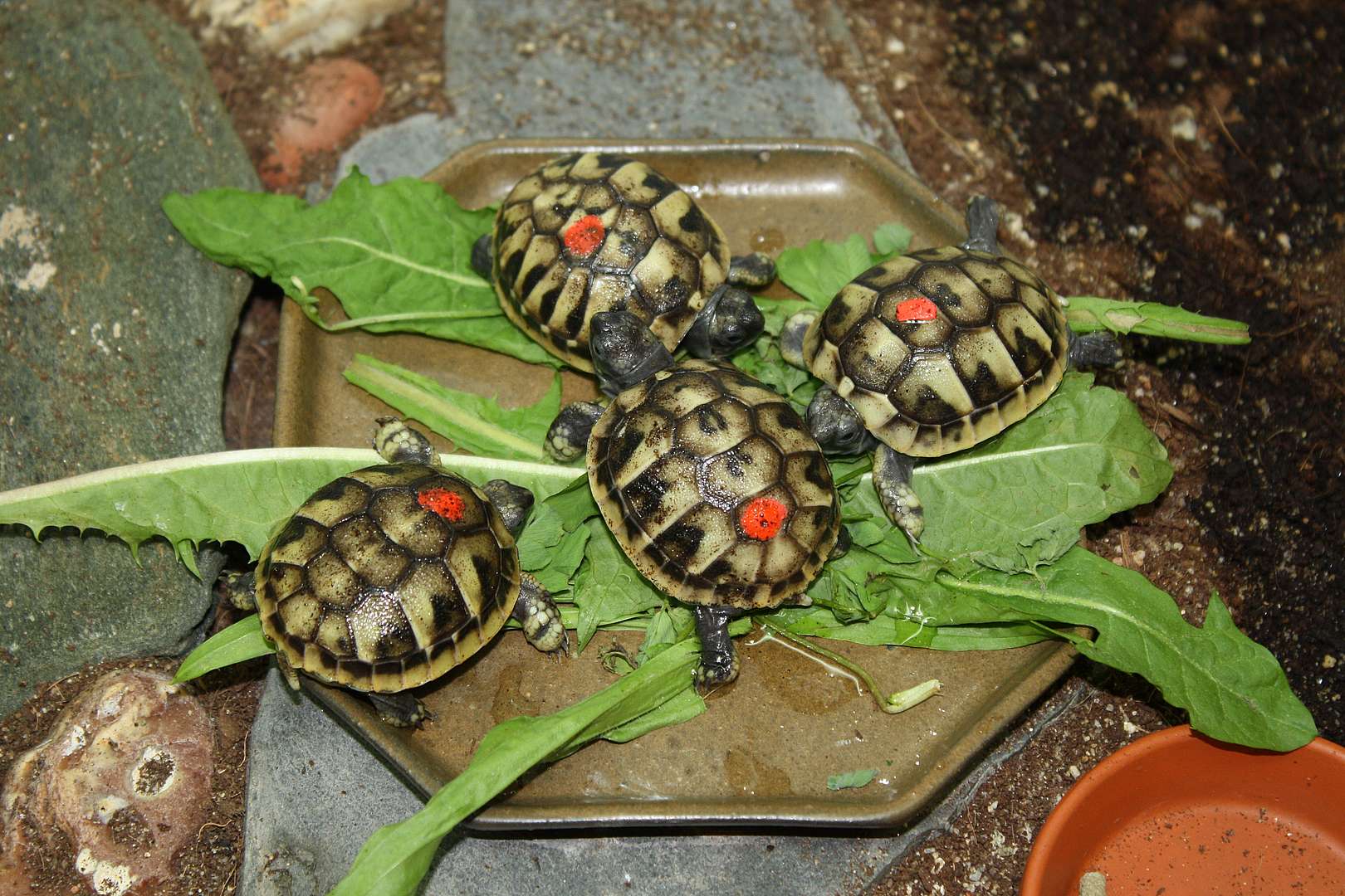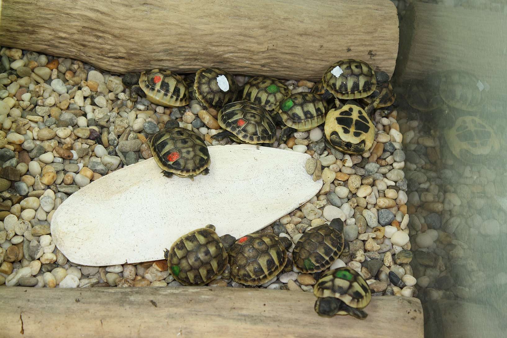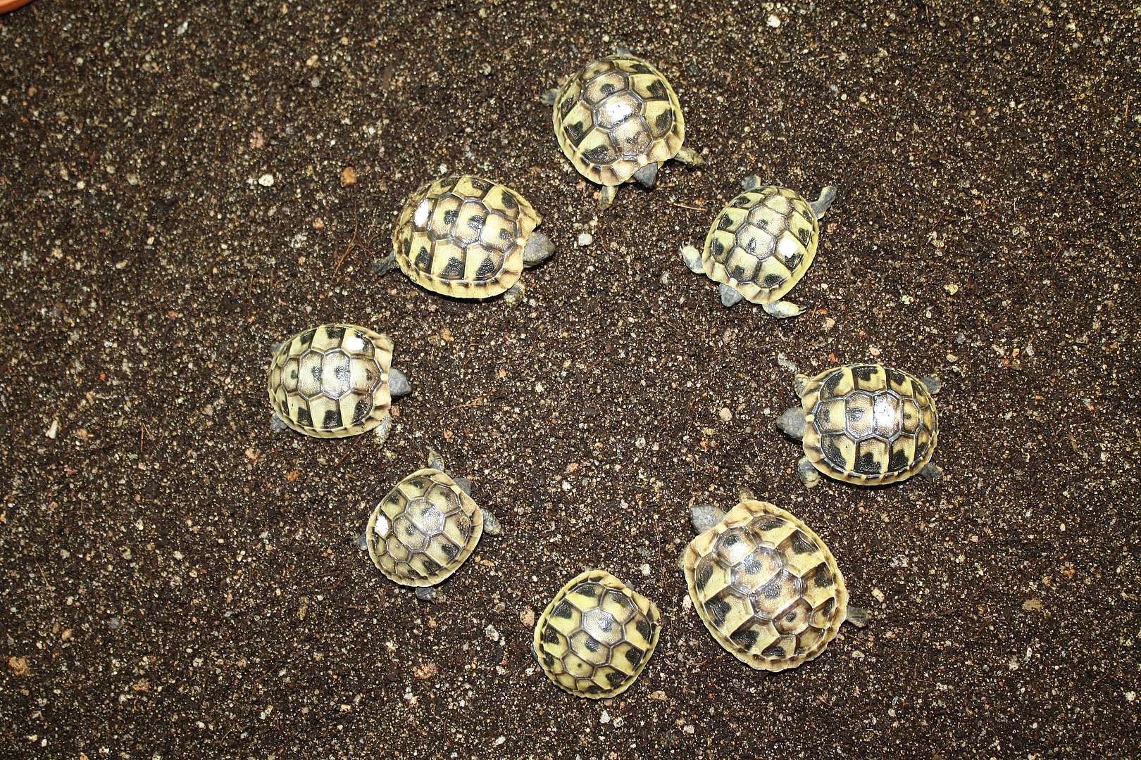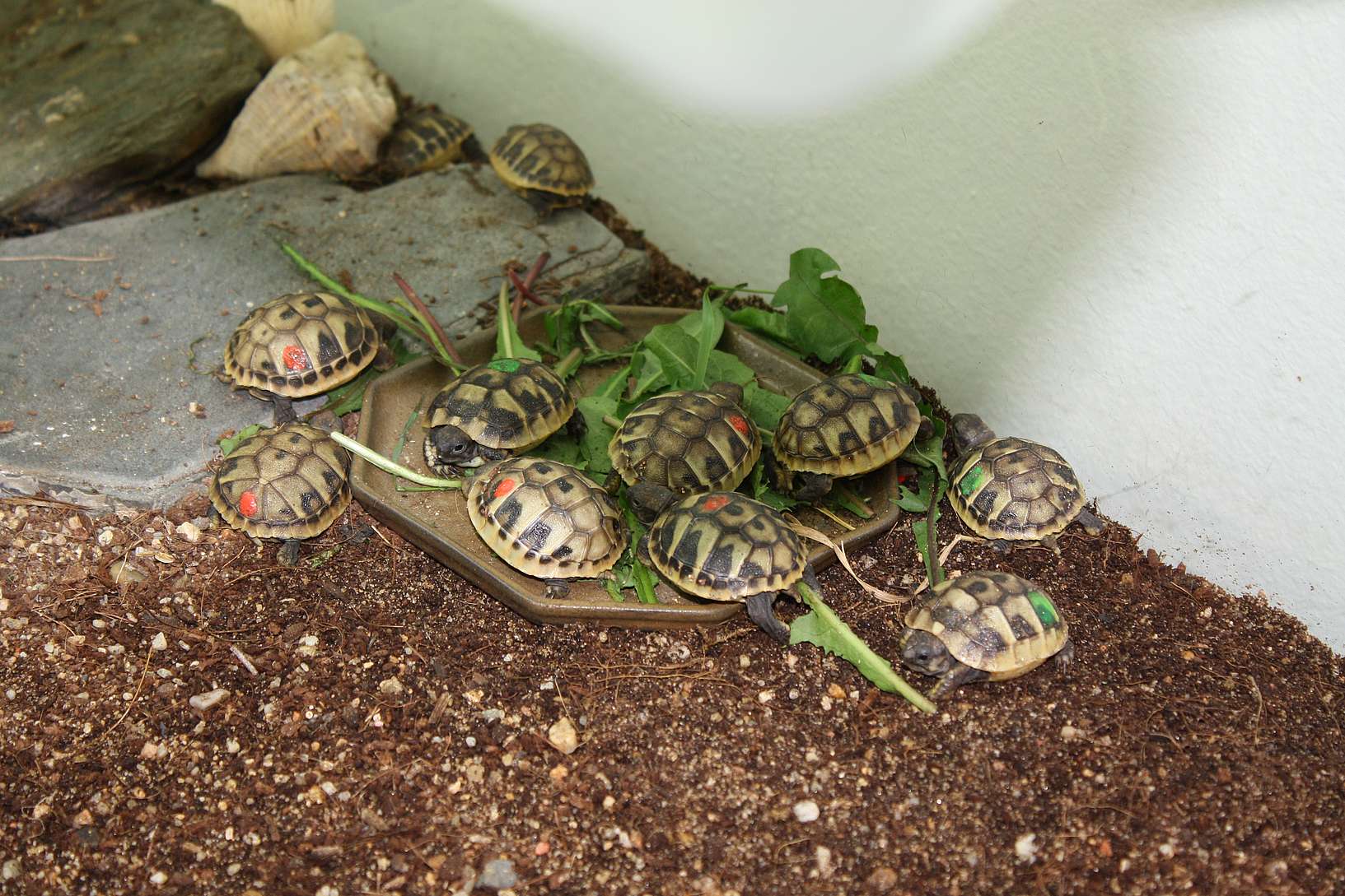 Želví mláďata stará 1 rok, 2 týdny a 1 den (14. 8. 2018).
