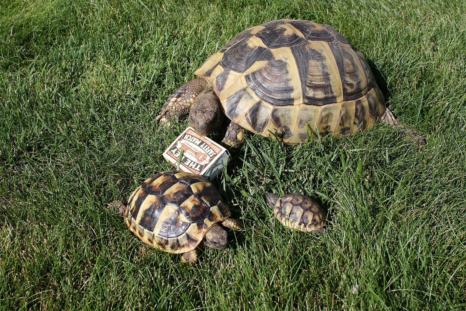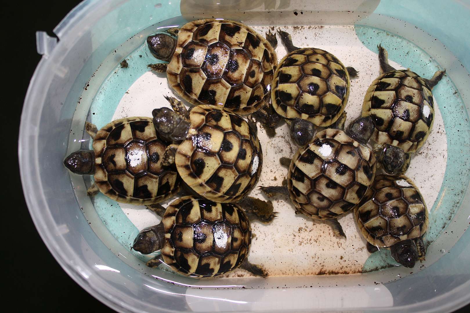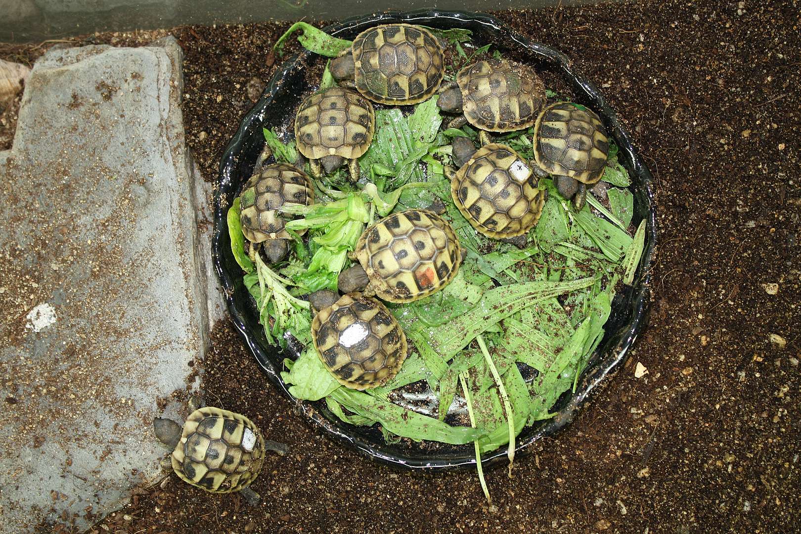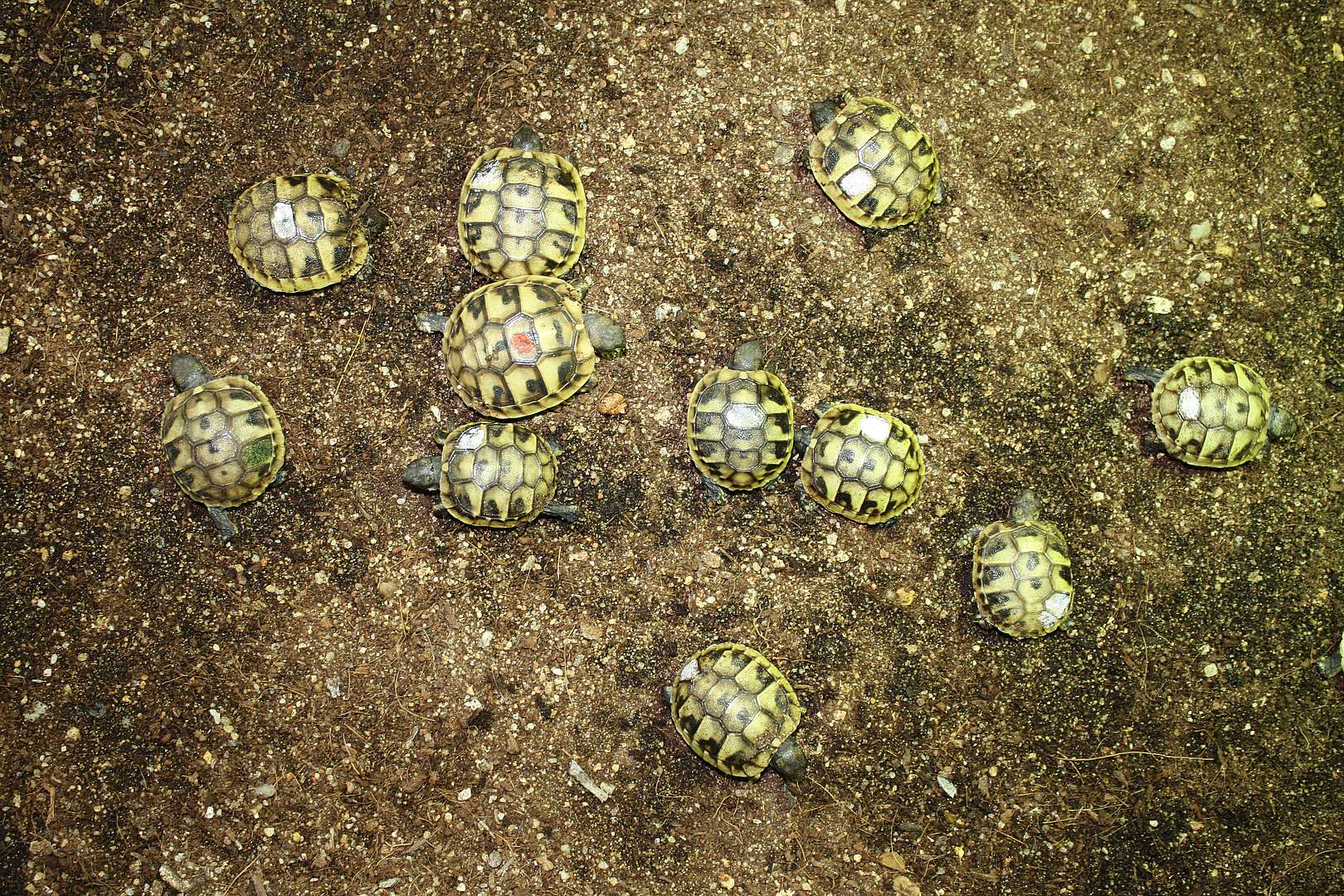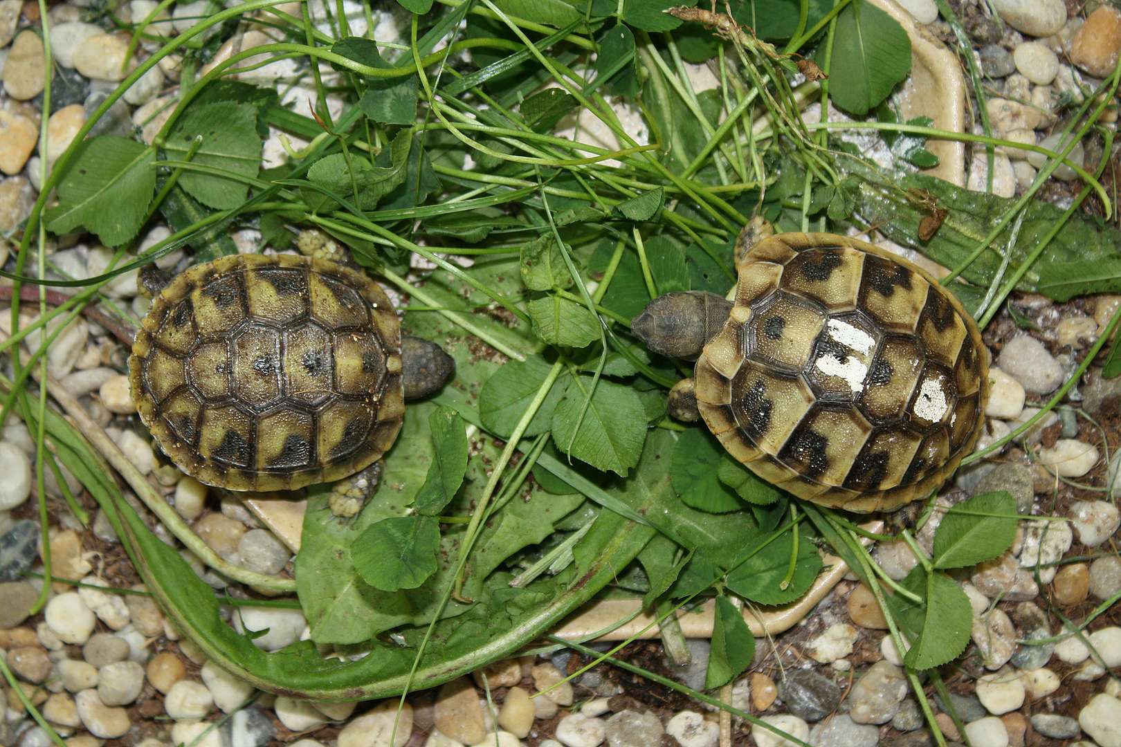 Želví mláďata stará 1 rok, 2 týdny a 1 den (14. 8. 2018).