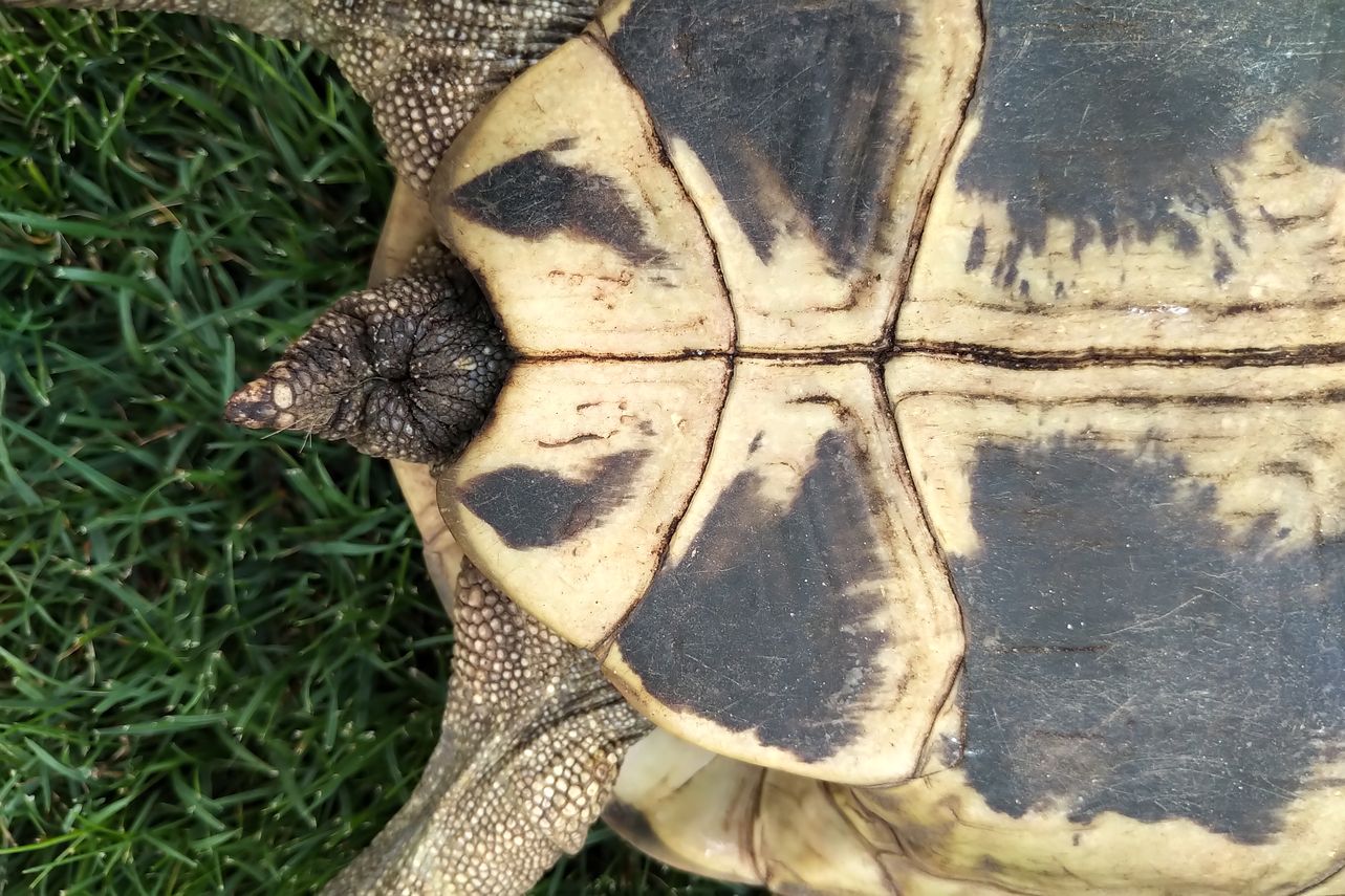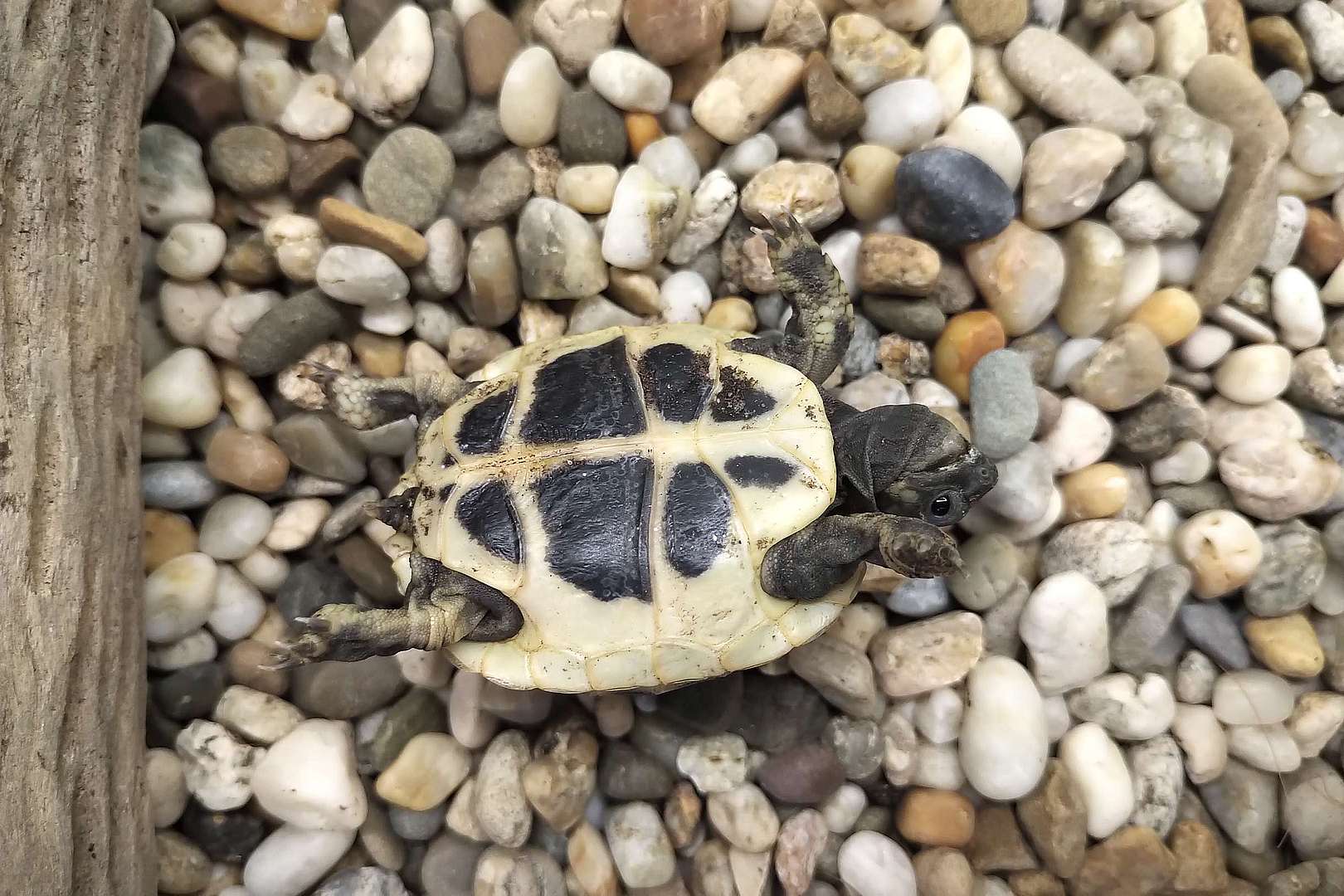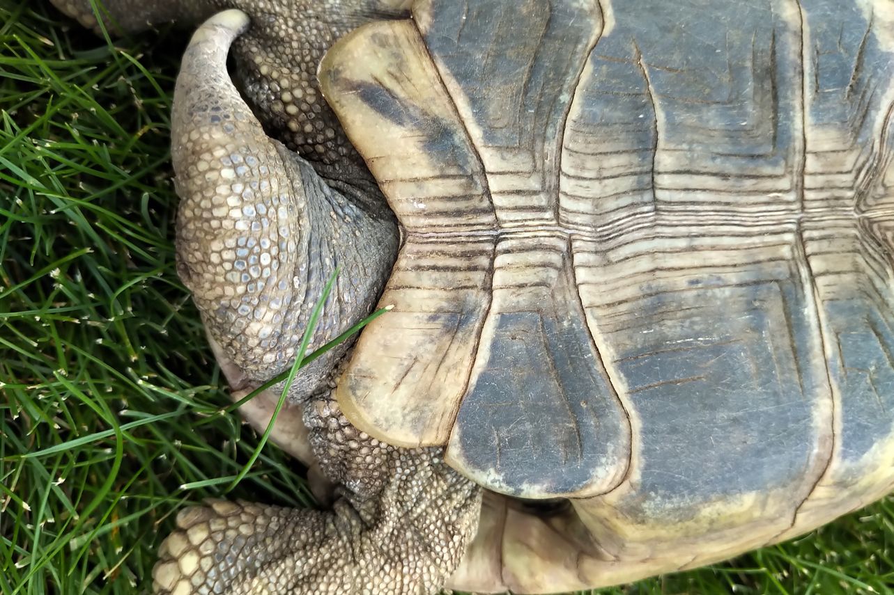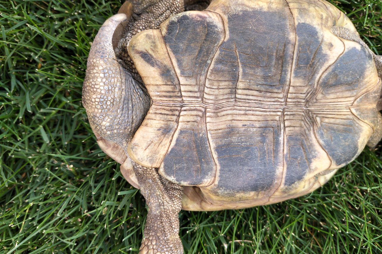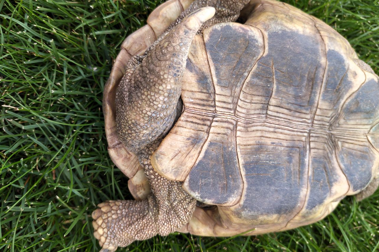 Ajajaj. Něco se nepovedlo. Želvička si obvykle na nohy pomůže sama, ale když jsme poblíž, můžeme jí pomoci.