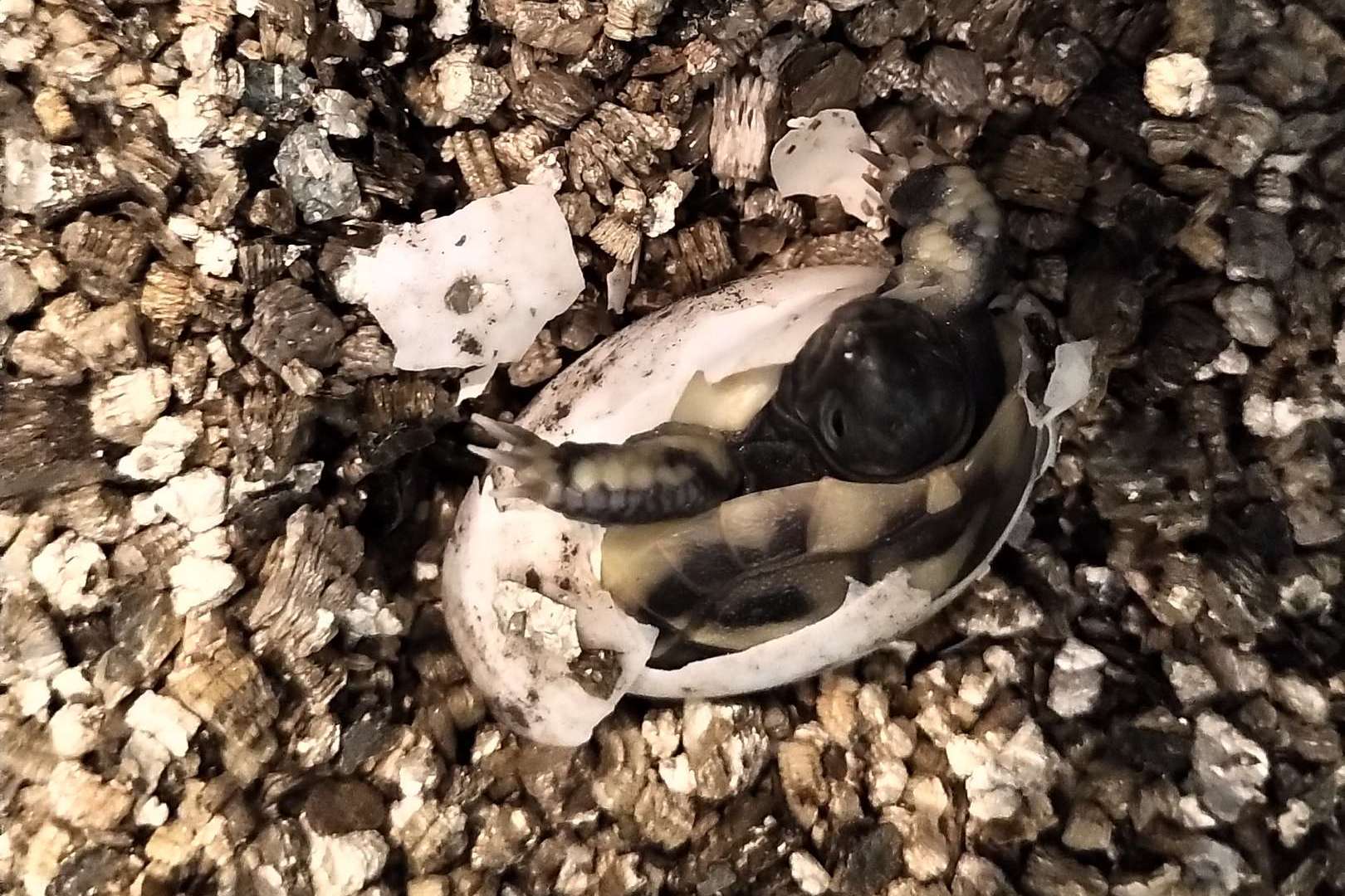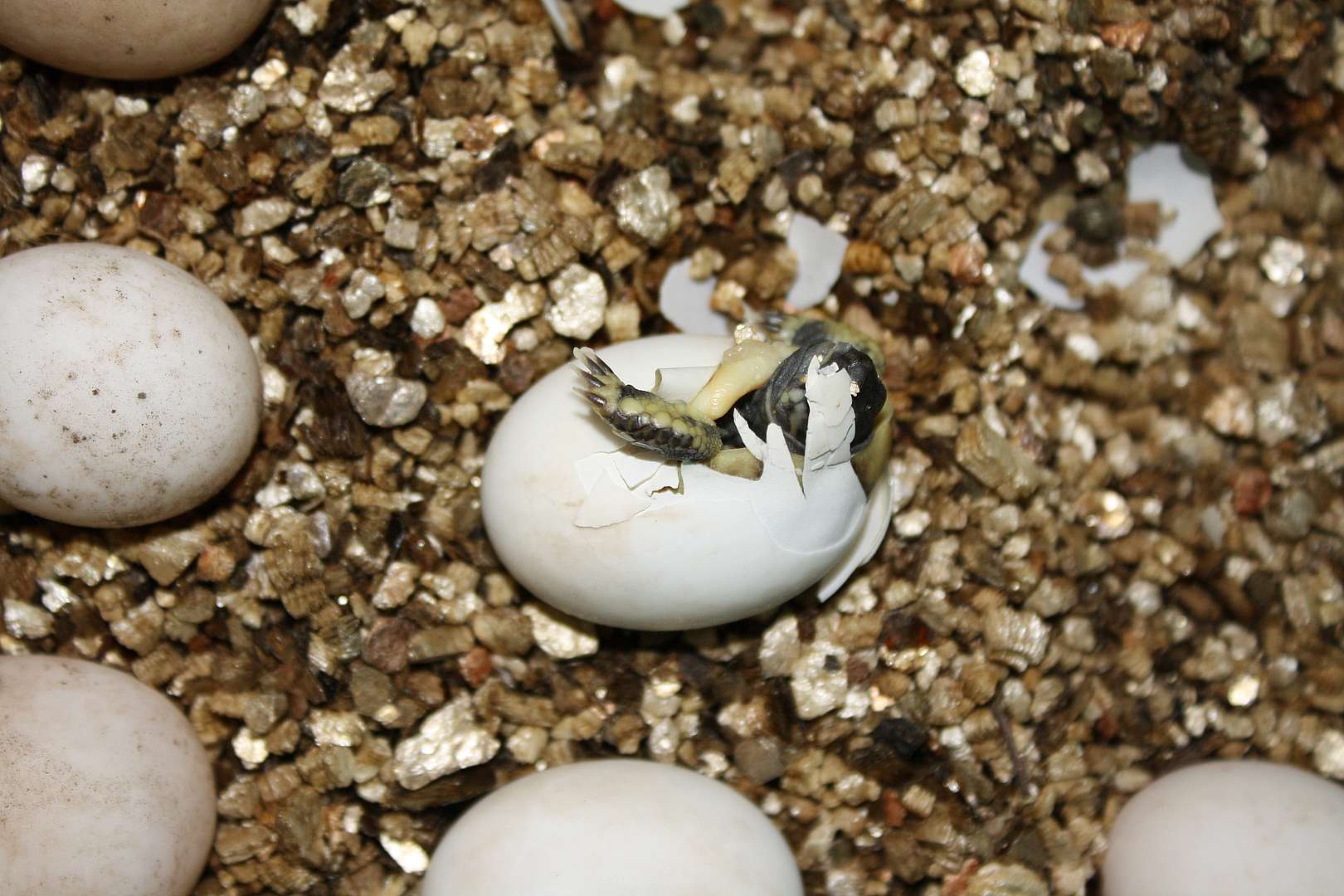 28. 7. 2019, po 55 dnech od snůšky, se klube první mláďátko. Než se zcela vylíhne, může to trvat i 24 hodin. Hmotnost v tomto případě je 11 g.